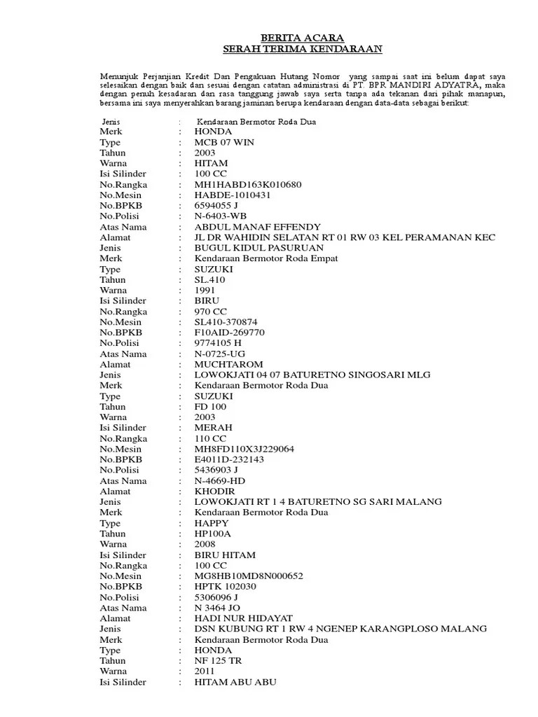 Contoh Surat Kuasa Serah Terima Mobil / Contoh Berita Acara Serah Terima Mobil Dinas Contoh Surat